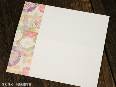 台紙はやや生成り色の優しい風合いで、雅な和の絵柄を添えています。
